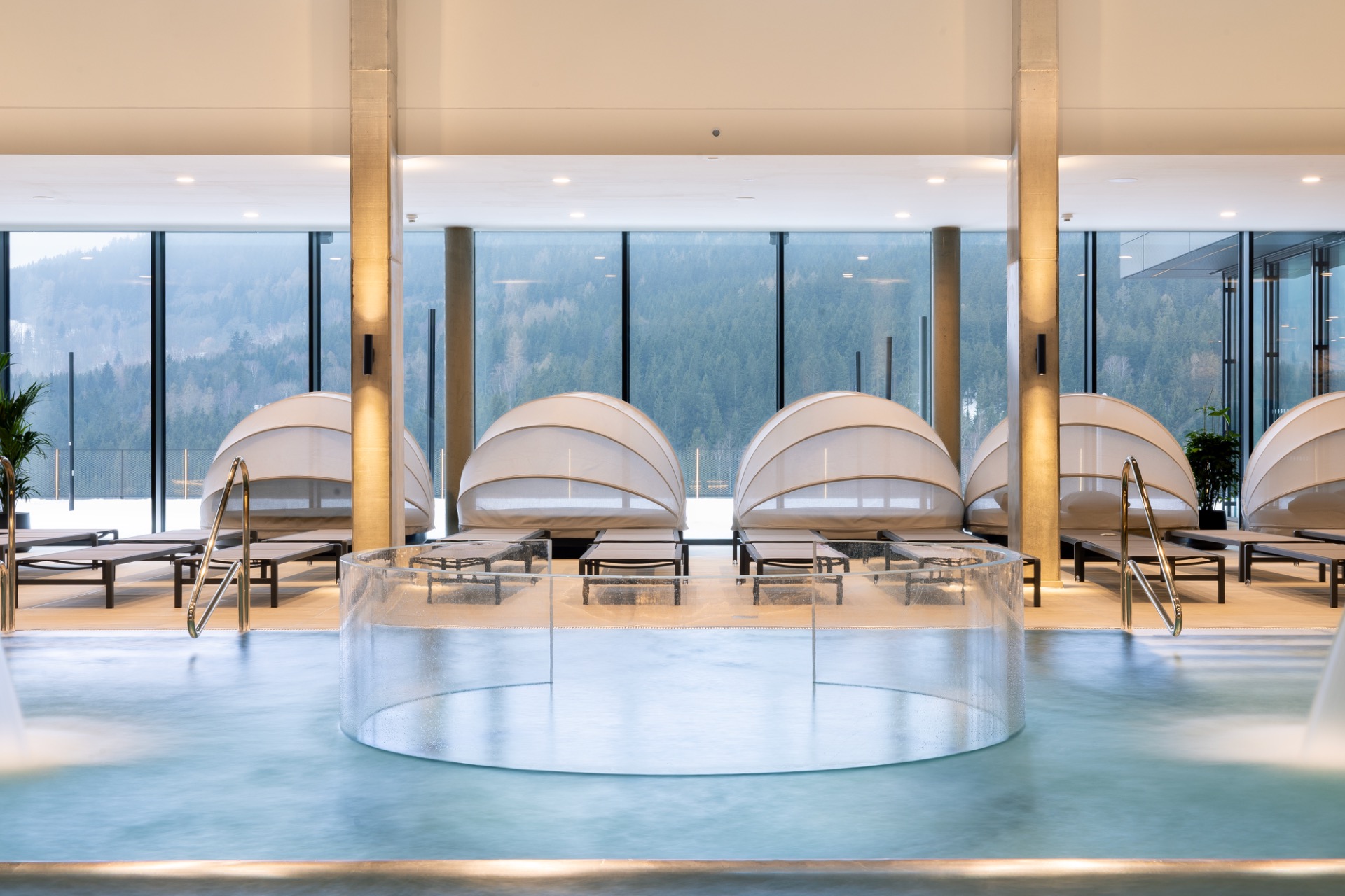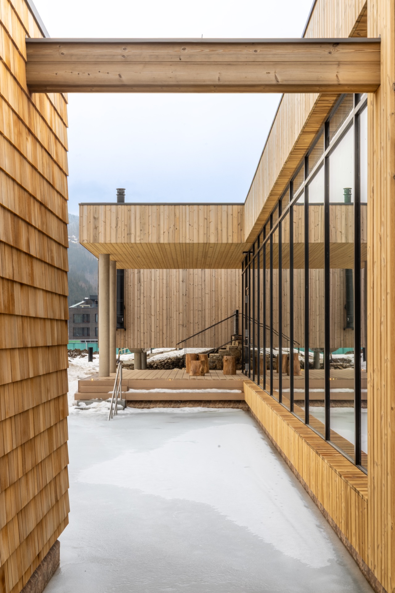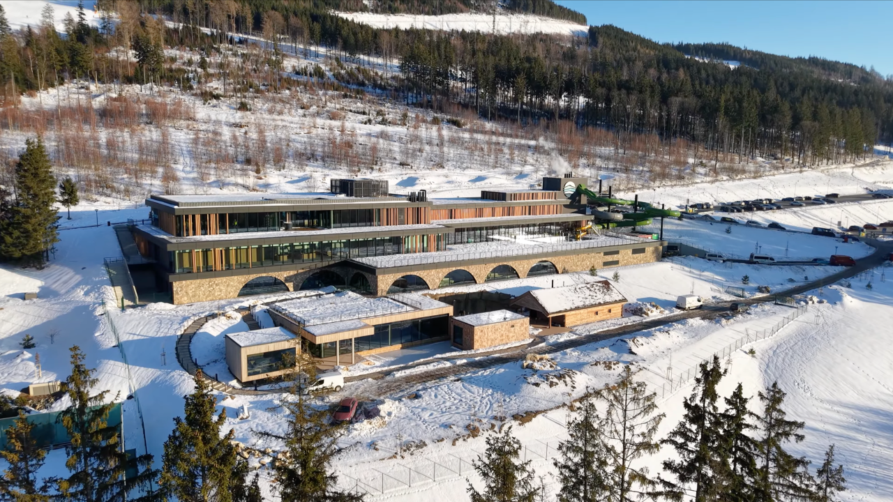 Jedním z nejzajímavějších prvků celého řešení je využití odpadního tepla ze saunového provozu k ohřevu vody v bazénech. Energie, která by jinak zmizela komínem, jde tam, kde ji návštěvníci ocení — do vyhřátého bazénu s výhledem do hor. Systém přitom průběžně optimalizuje spotřebu podle aktuálního provozu, takže areál neplýtvá ani ve chvílích, kdy je návštěvnost nižší.